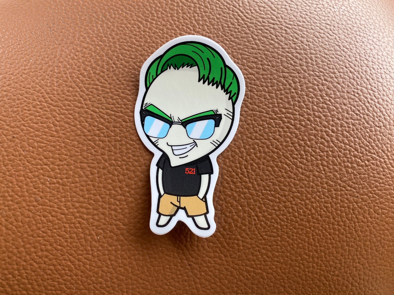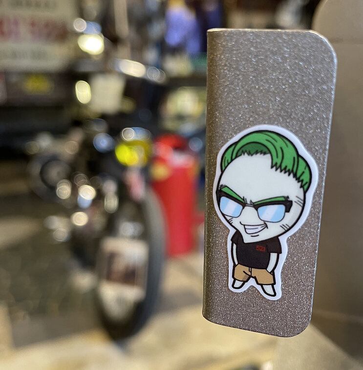 スーパーカブと野菜のかぶをかけていまして、店主の若尾さんをイメージして作られたステッカーです。
