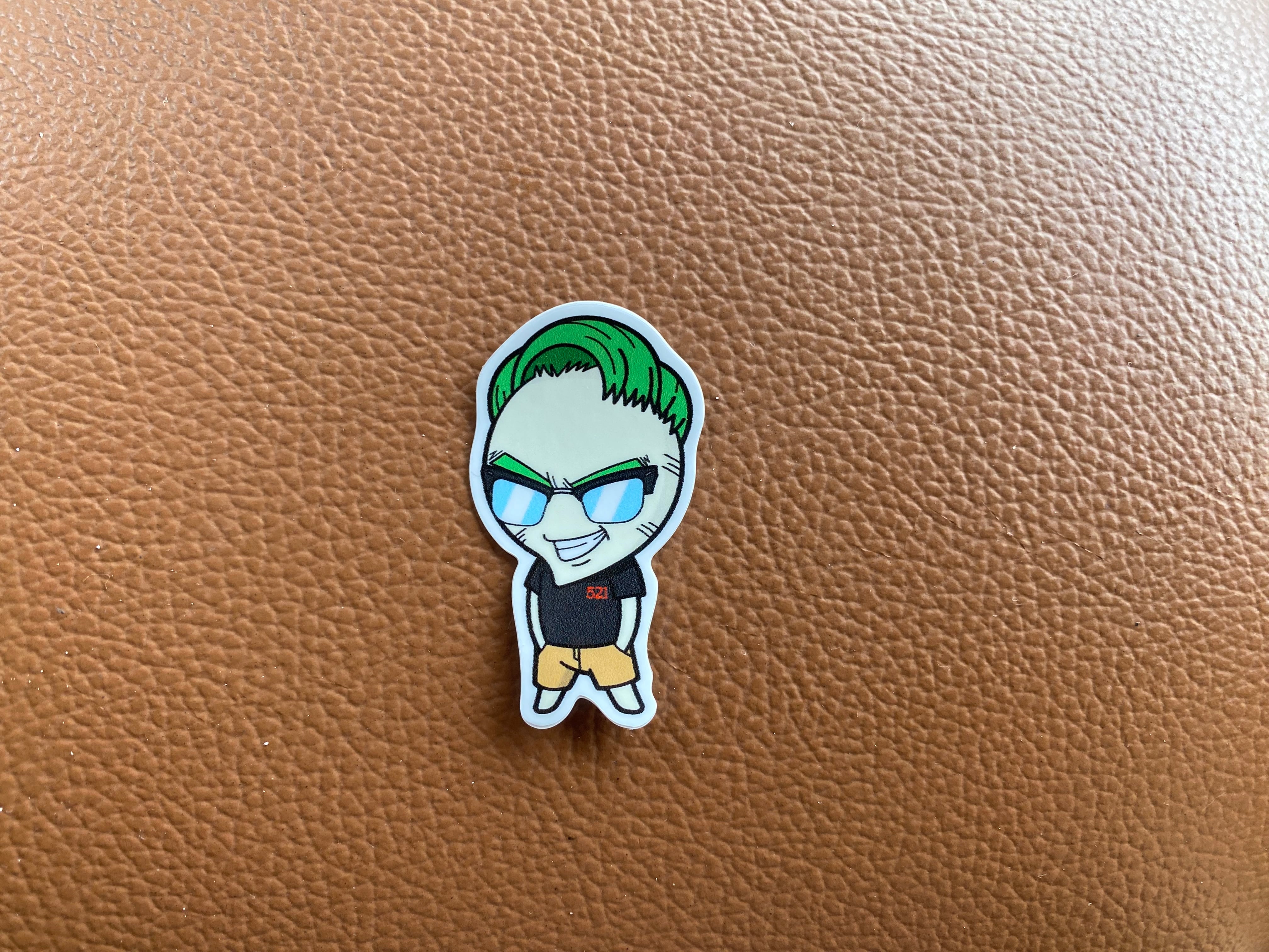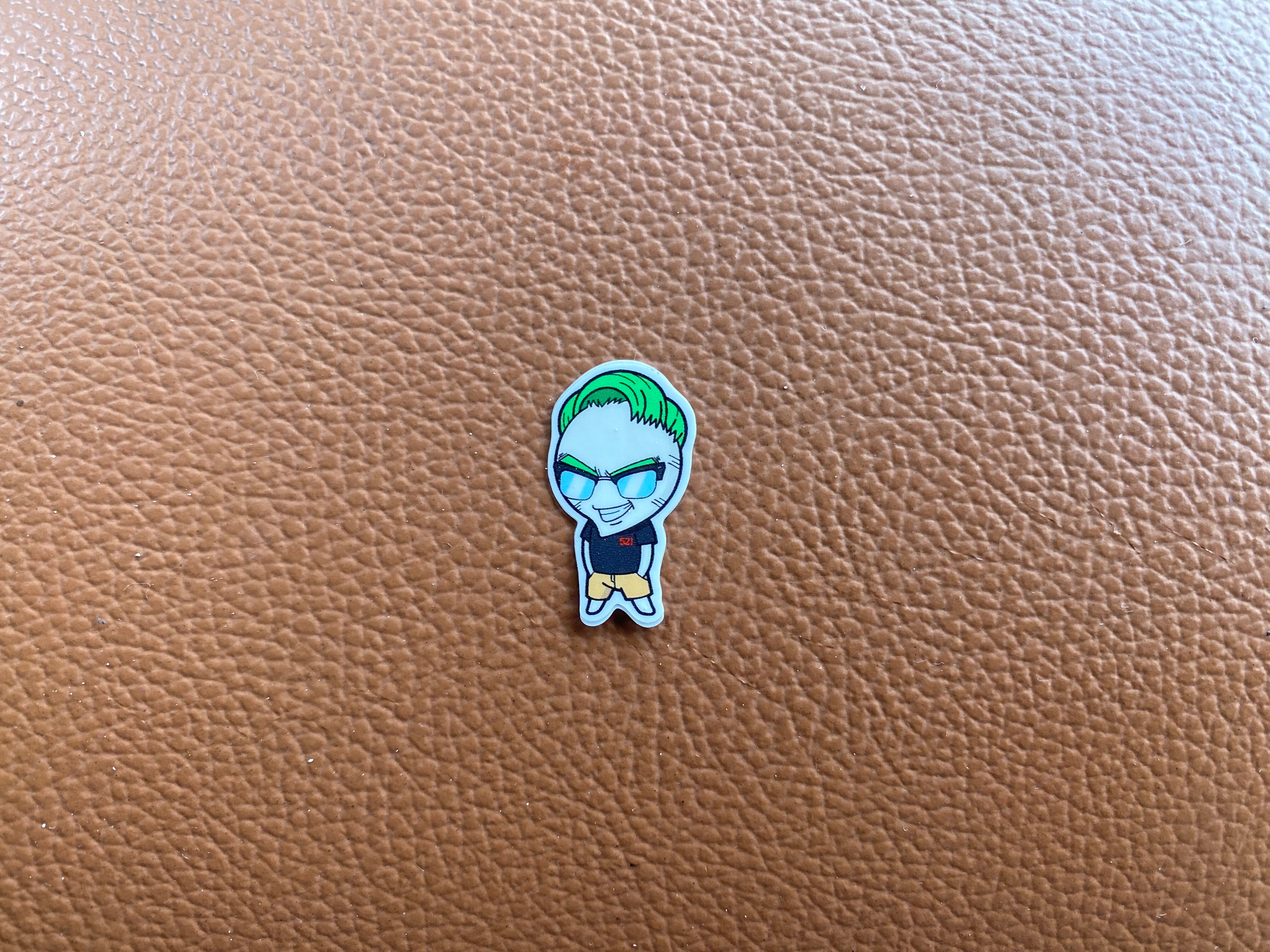 若尾さんと言ったらこのメガネと七三分けヘアスタイル、夏は少年のような半袖・短パンの元気なイメージがステッカーからも伝わるような、かわいらしいステッカーです。(サイズ3種類)